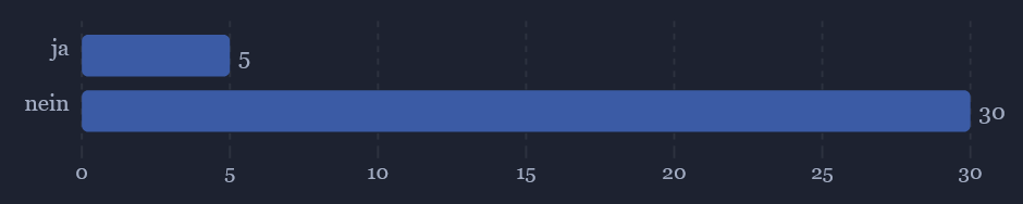 Der Chat auf der anderen Seite ist für viele ein daily Driver. Die meisten nutzen ihn täglich, viele mindestens wöchentlich. Die meisten Nicht-Nutzer gaben an, den Chat nicht zu nutzen da sie Chats nicht mögen oder das Angebot nicht kannten. Eine kleinere Menge sieht den Mangel an Interaktion im Chat als Grund - dies wurde aber auch von Nutzenden häufig erwähnt.